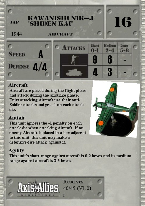 Aircraft are placed during the flight phase and attack during the airstrike phase. Units attacking Aircraft use their anti-Soldier attacks and get –1 on each attack die.