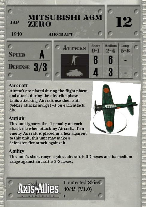 Aircraft are placed during the flight phase and attack during the airstrike phase. Units attacking Aircraft use their anti-Soldier attacks and get –1 on each attack die.